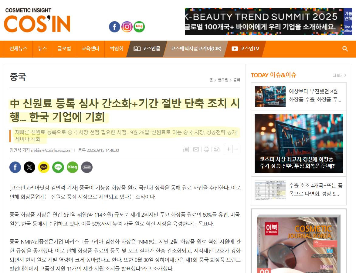 기사전문 : https://www.cosinkorea.com/news/article.html?no=56043